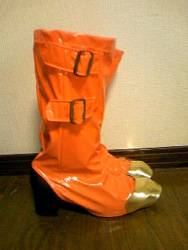 ブーツカバーは私物未使用のローファーに着用させています。丈はミドル丈程度。