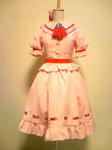 残りボタンつけ裾処理など手縫い箇所と、背面リボンと羽となっています。