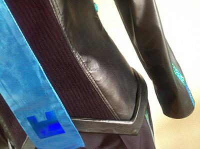 画像は何日か前のものとなりますので、現在、円形パーツ角形パーツなど各種パーツの取り付けも終了、衣装本体は全工程が終了し、マフラーの生地待ち、近日完成予定です。