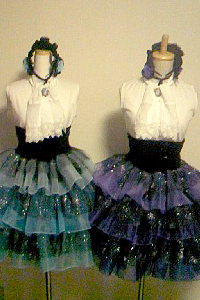 スカート、ヘッドドレスの飾り取り付けが終了し、