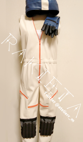 今週はヘッドギアの造形部分、オールインワンの修正、手袋の試作と縫い合わせ、ニーガードの制作を行いました。来週はジャケットの作業などを行い完成予定です。
