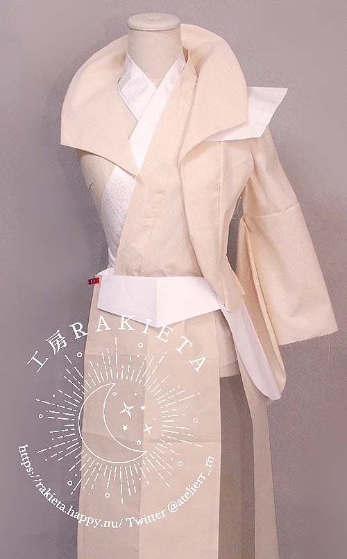 仮縫いが終了いたしました。造形パーツ部分はサイズ比較の為の仮置きとなります。