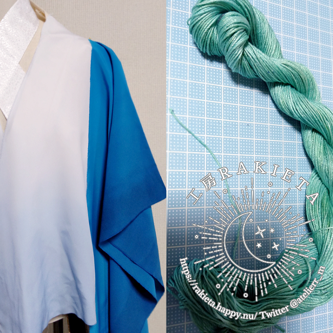 ブラウスのグラデーション染色を行いました。タッセルについても構成が特殊且つ近いお色の素材がない為、糸の染色を行いました。