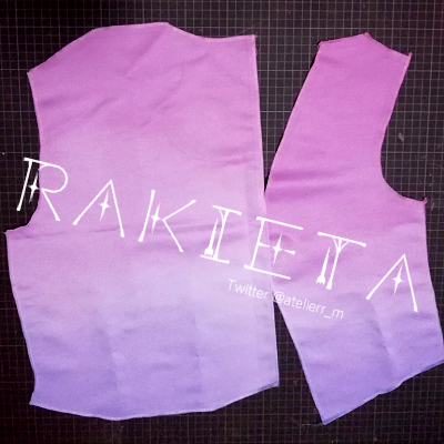 今週はひめ衣装のトップ裁断と生地の染色、見頃の縫い合わせを行わせていただきました。