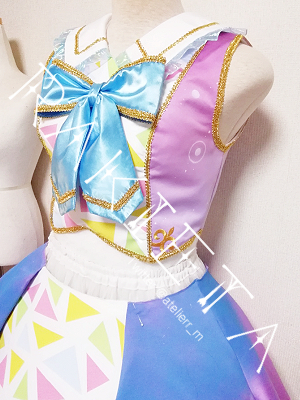 今週はひめ衣装のトップ縫い合わせとラインつけ、装飾、リボンの制作などを行わせていただきました。トップは残り手縫いでの装飾つけ、裏処理などを行って完成となります。